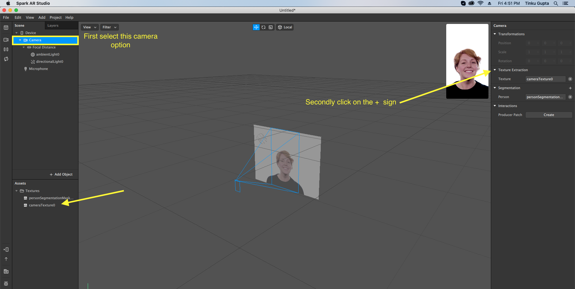 - After Completing the First Step, just click the Texture Extraction Plus Sign and create the Camera Texture.