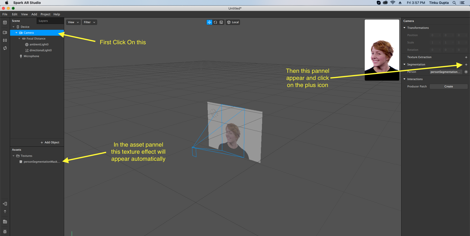 - After clicking on the plus sign a person-segmentation mask created in the assets panel.
