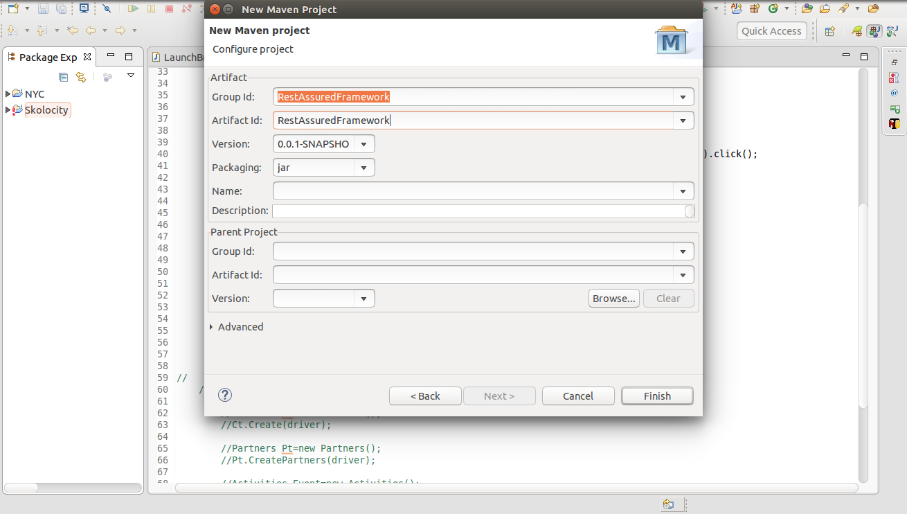 Let create a project: Here I am using sprint suite tool for creating a maven project.