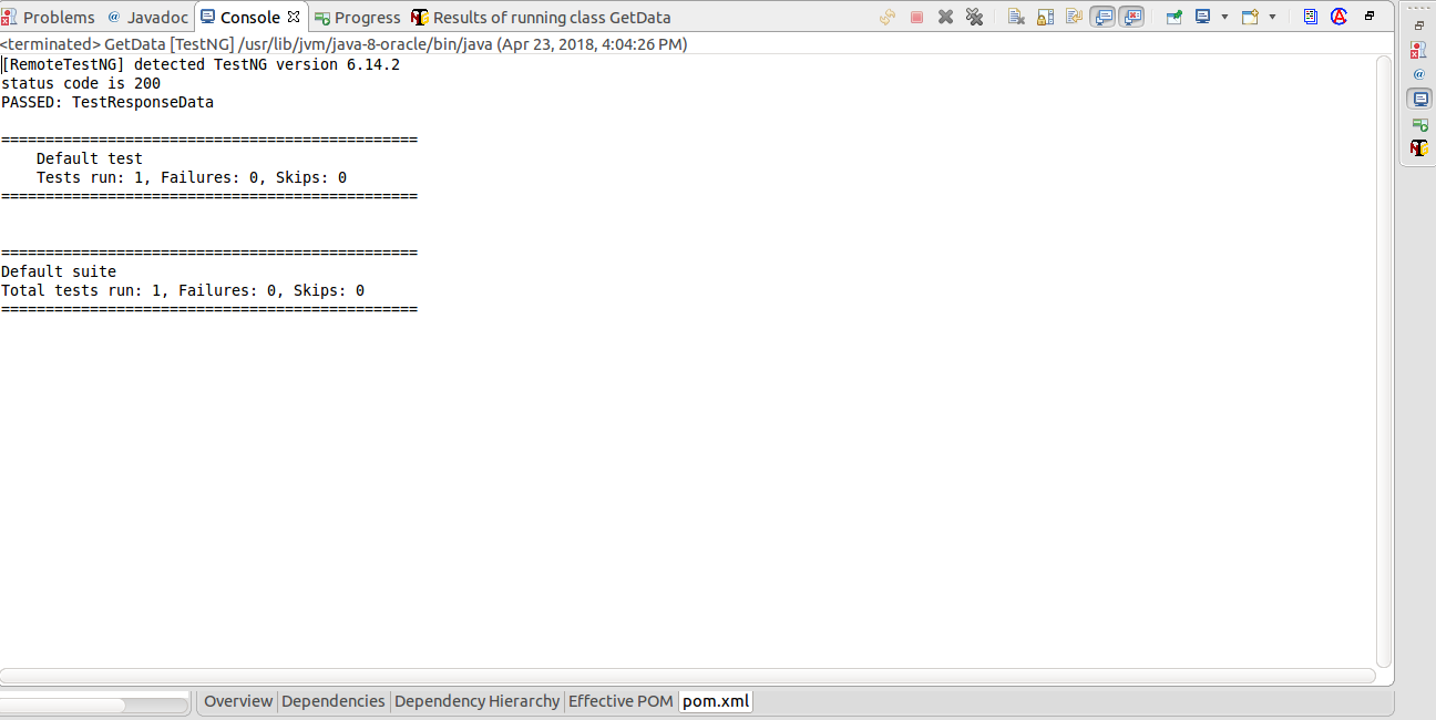 v) Check the Response of API. To Generate the Result I am using a TestNG framework.