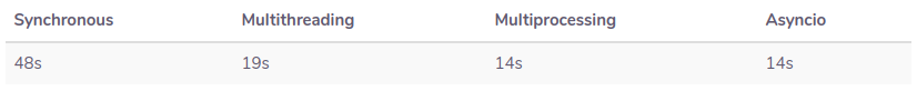 print("Time taken via synchronously: {}".format(timeit.Timer(main).timeit(number=1)))